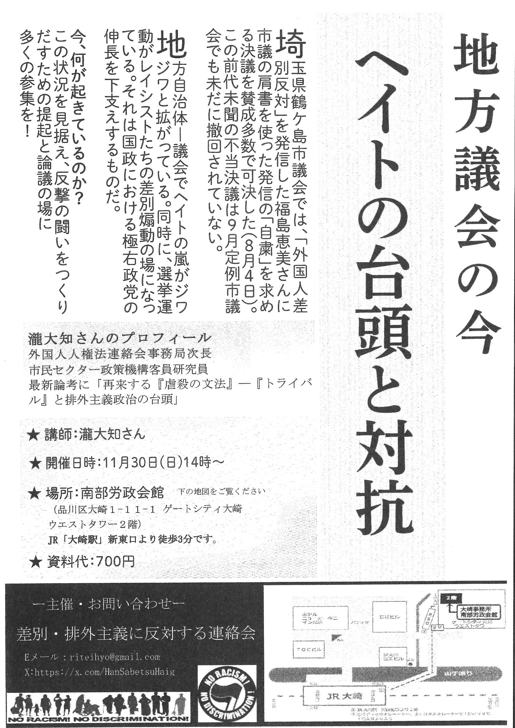 主催:差別・排外主義に反対する連絡会 riteihyo@gmail.com