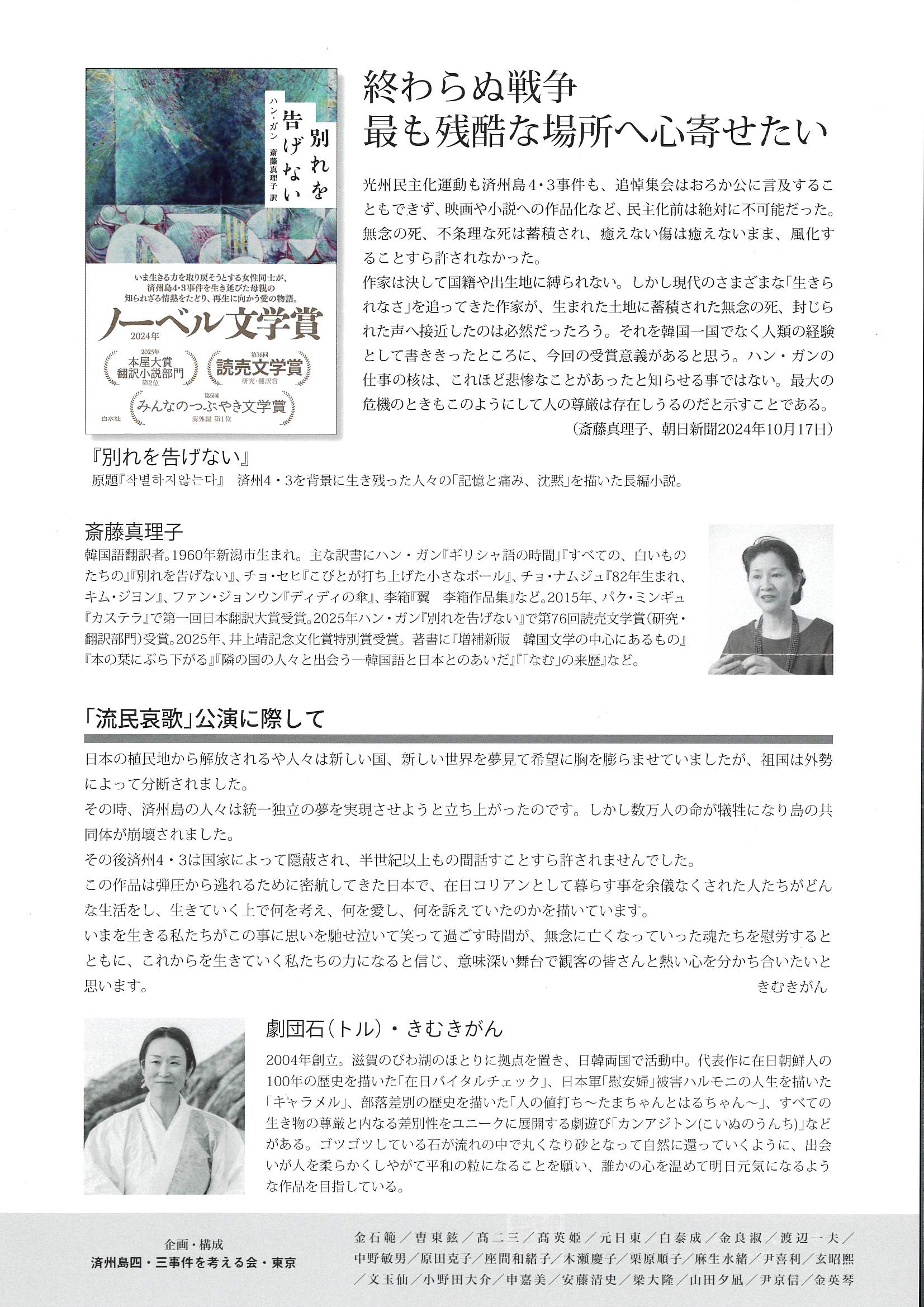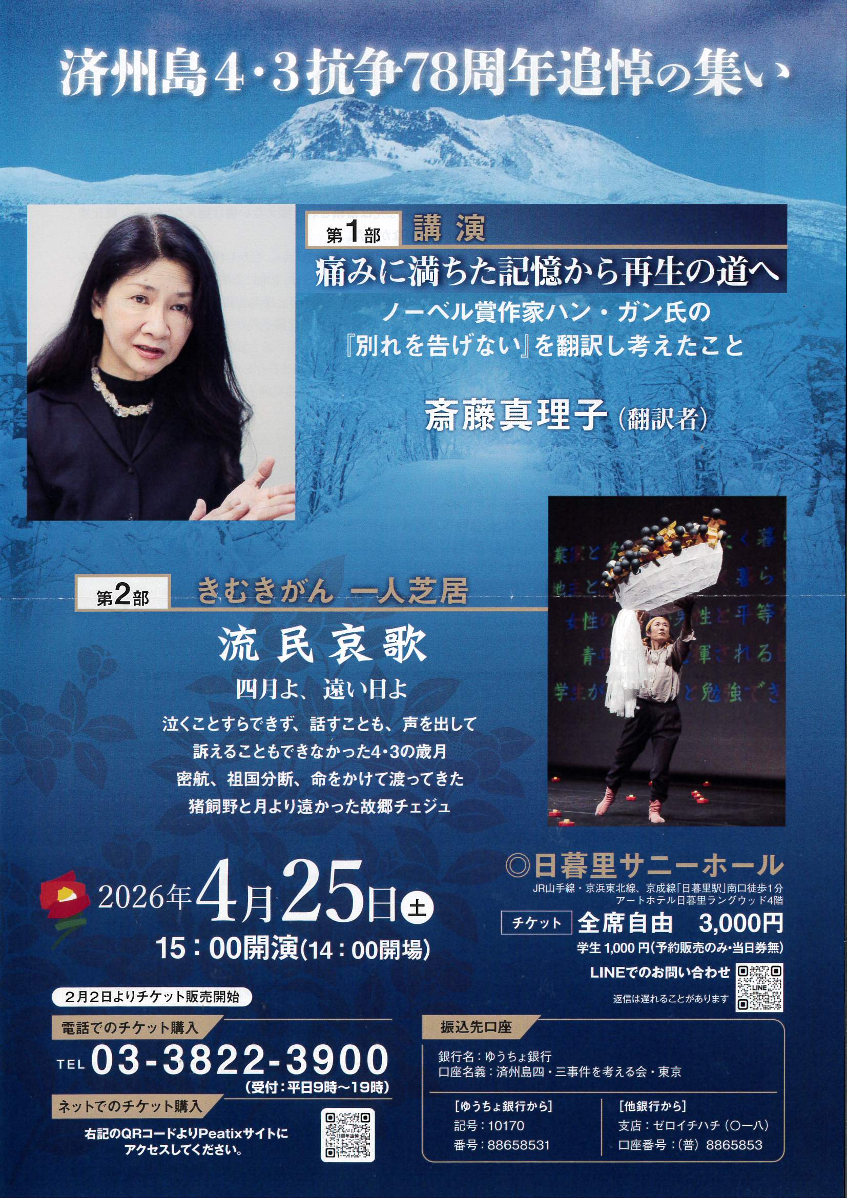 四月よ、遠い日よ/泣くことすらできず、話すことも、声を出して/訴えることもできなかった4・3の歳月/密航、祖国分断、命をかけて渡ってきた/猪飼野と月より遠かった故郷チェジュ