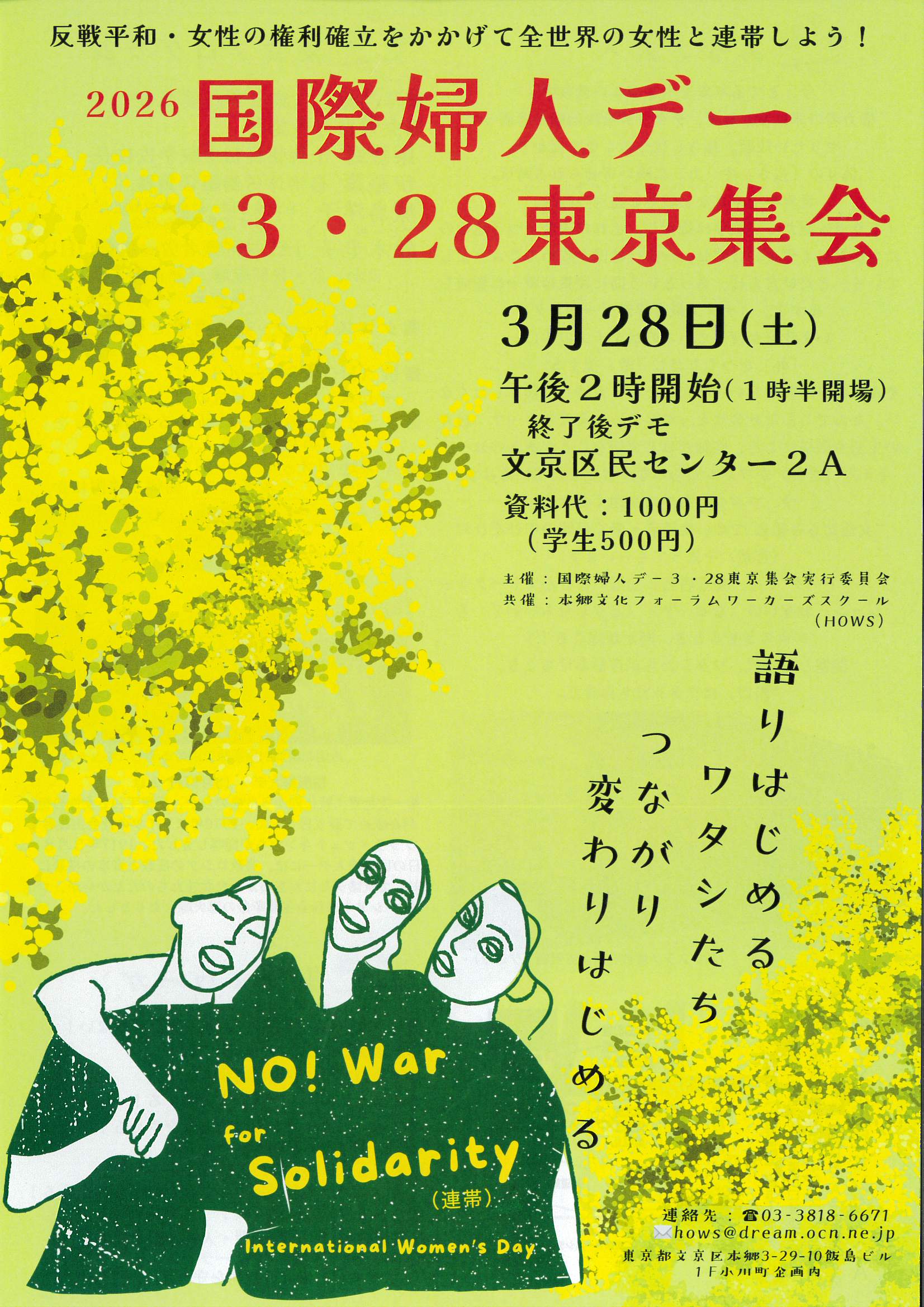 反戦平和・女性の権利確立をかかげて全世界の女性と連帯しよう!
