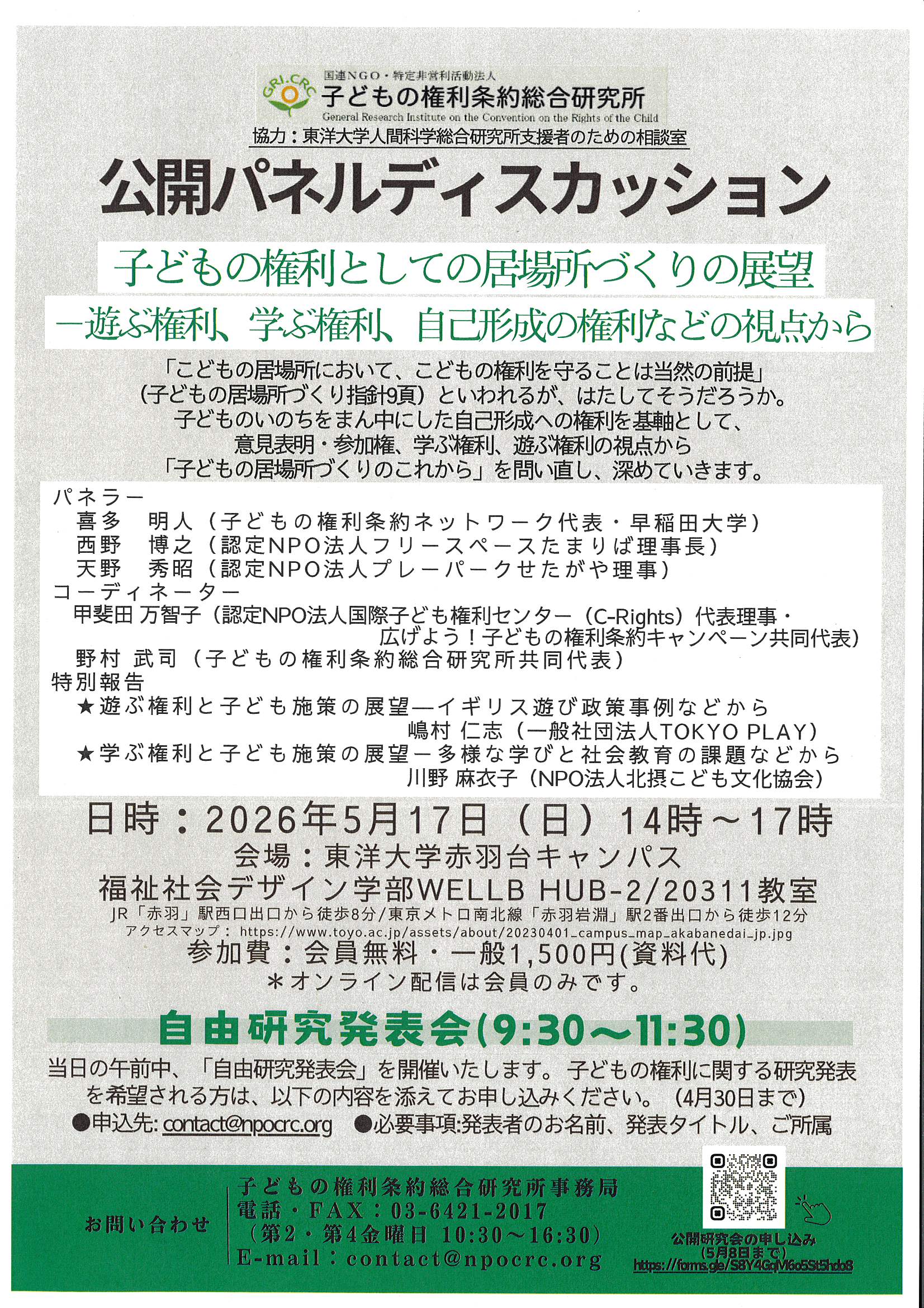 5/17 公開パネルディスカッション 子どもの権利としての居場所づくりの展望―遊ぶ権利、学ぶ権利、自己形成の権利などの視点から