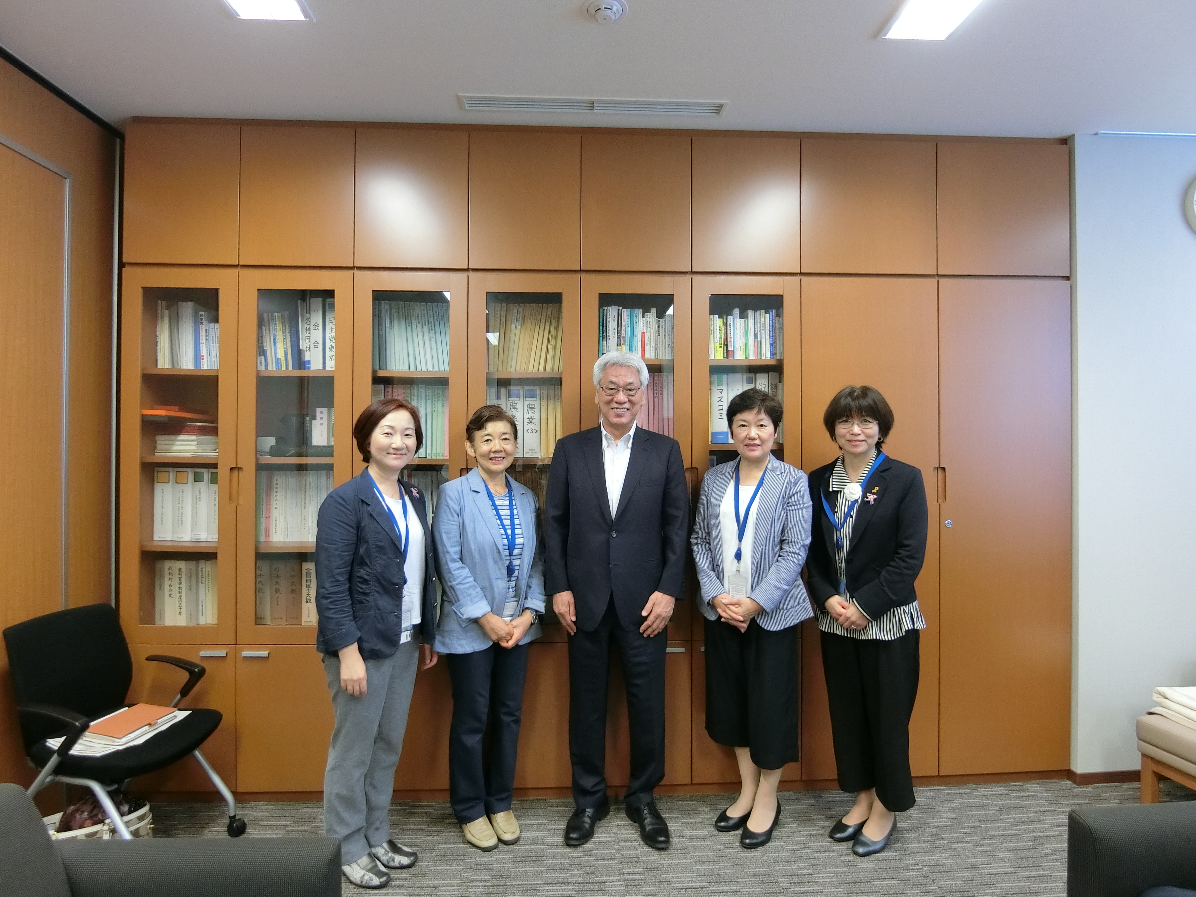 国交省担当者に要望書を渡す、左から、生活者ネット都議の西崎光子、品川区議の吉田ゆみこ、練馬区議のやない克子、江戸川区議の伊藤ひとみ、前品川区議の井上八重子。右は、仲介の労をとってくださった小川敏夫参議院議員。9月21日