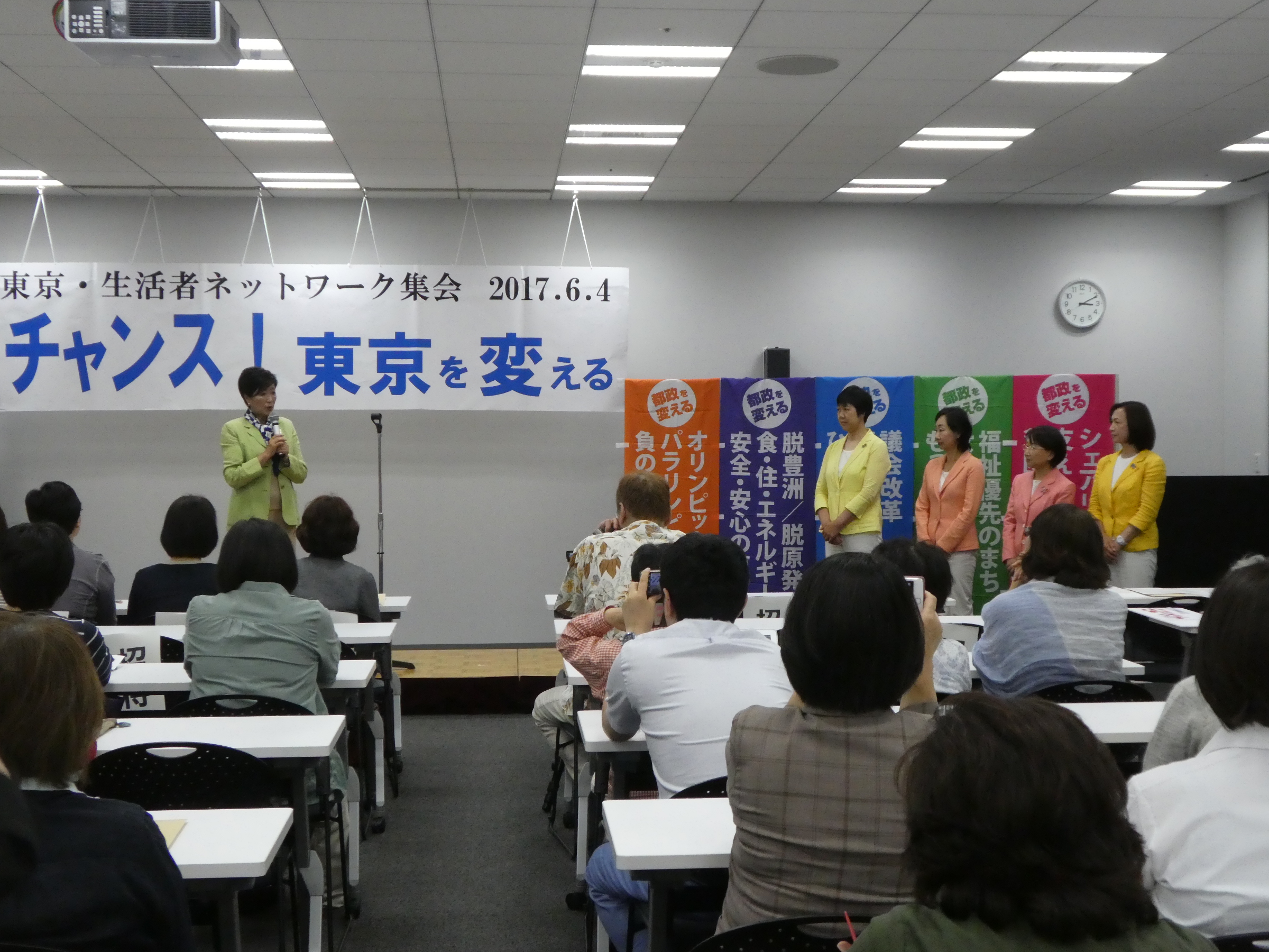 2017年東京都議会議員選挙の告示が今月23日と迫った、6月4日、東京・生活者ネットワークは、総決起集会「チャンス!東京を変える」を開催しました(於:ベルサール新宿グランド)。