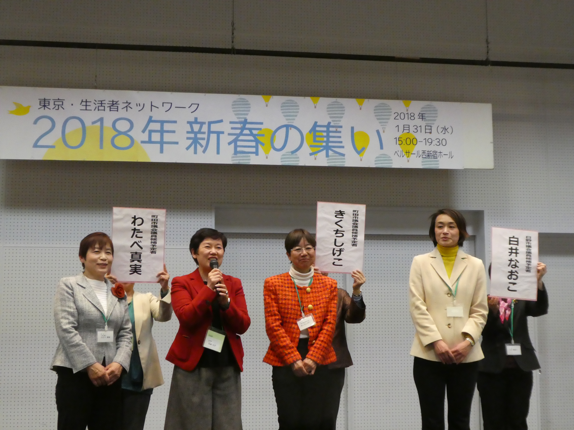 2018年1月31日、新宿区のベルサール西新宿ホールを会場に、「東京・生活者ネットワーク 2018年新春の集い」を開催した。