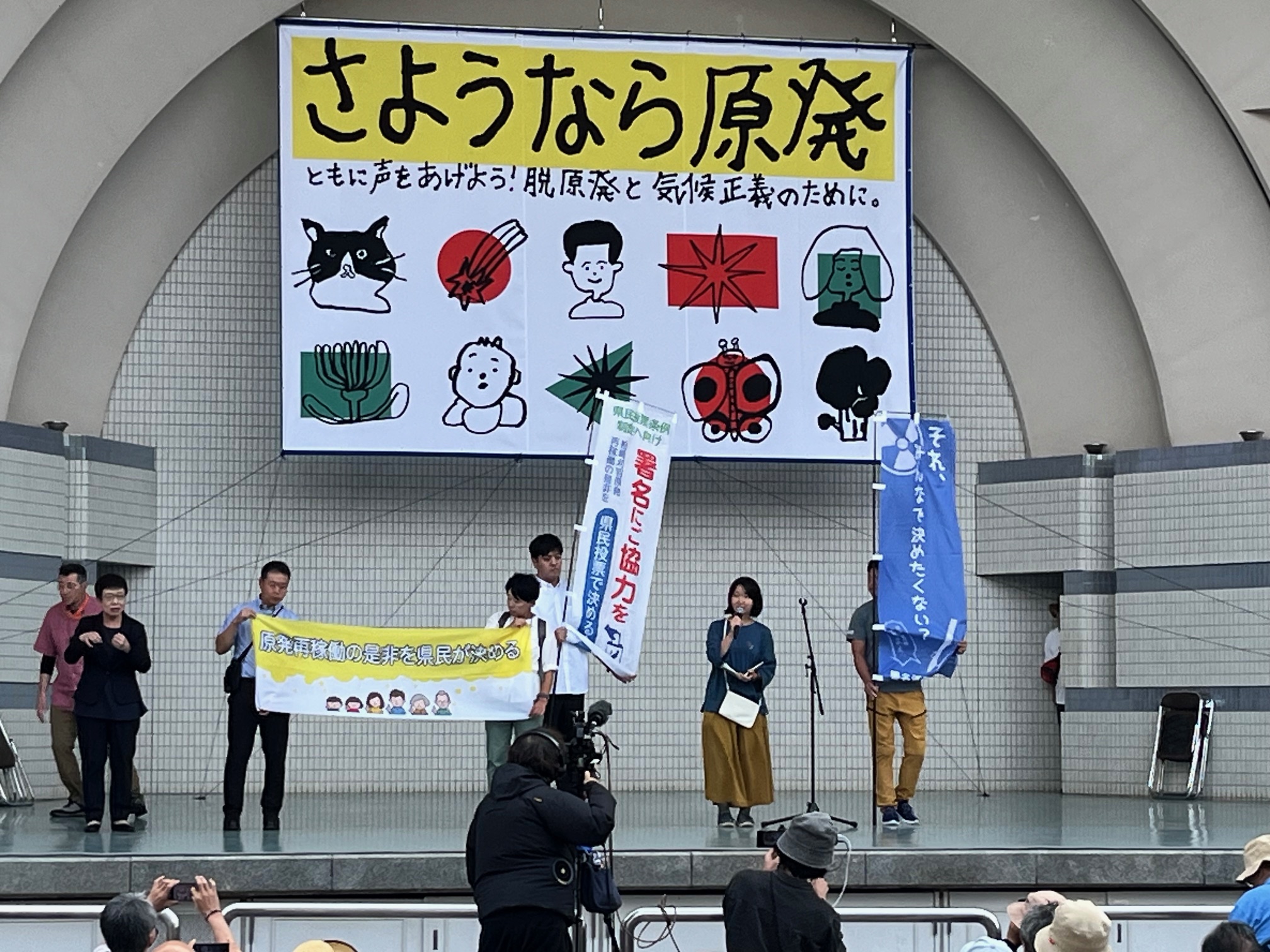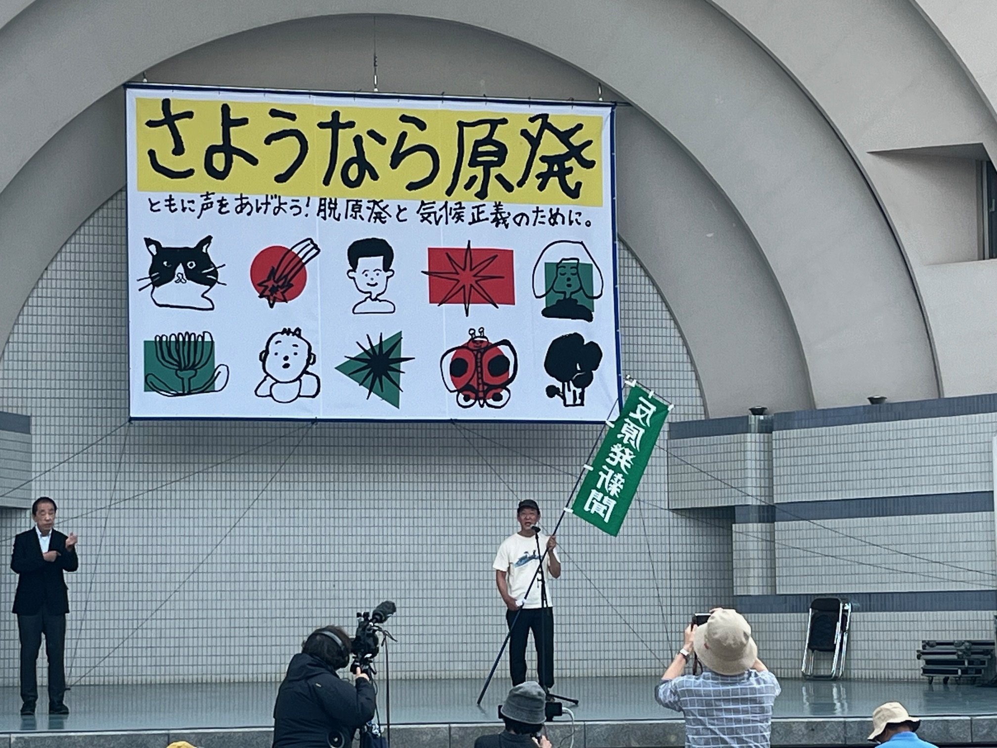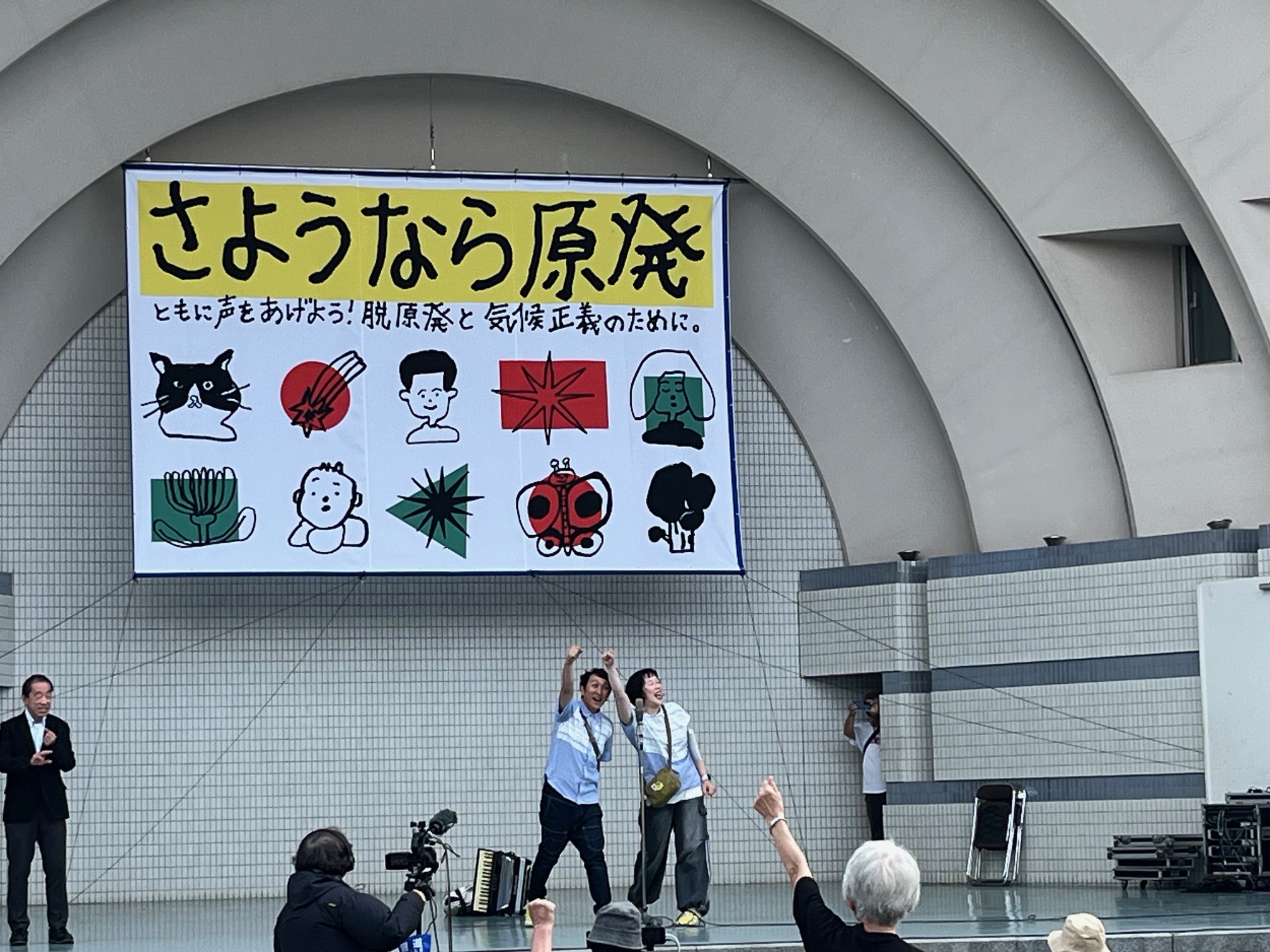 各地からの報告は、脱原発を実現した台湾から緑色公民行動連盟のツィ・スーシンさんとリン・ジョンイェンさん、福島原発告訴団の中路良一さんと仲間たち、柏崎刈羽原発再稼働の是非を県民投票で決める会世話人の寺田恭子さん、反原発新聞編集長の末田一秀さんが登壇。夫婦漫才コンビで東電記者会見の報道を継続しているおしどりマコケンのマコさん、ケンさんのクロージングライブで集会をしめくくった。
