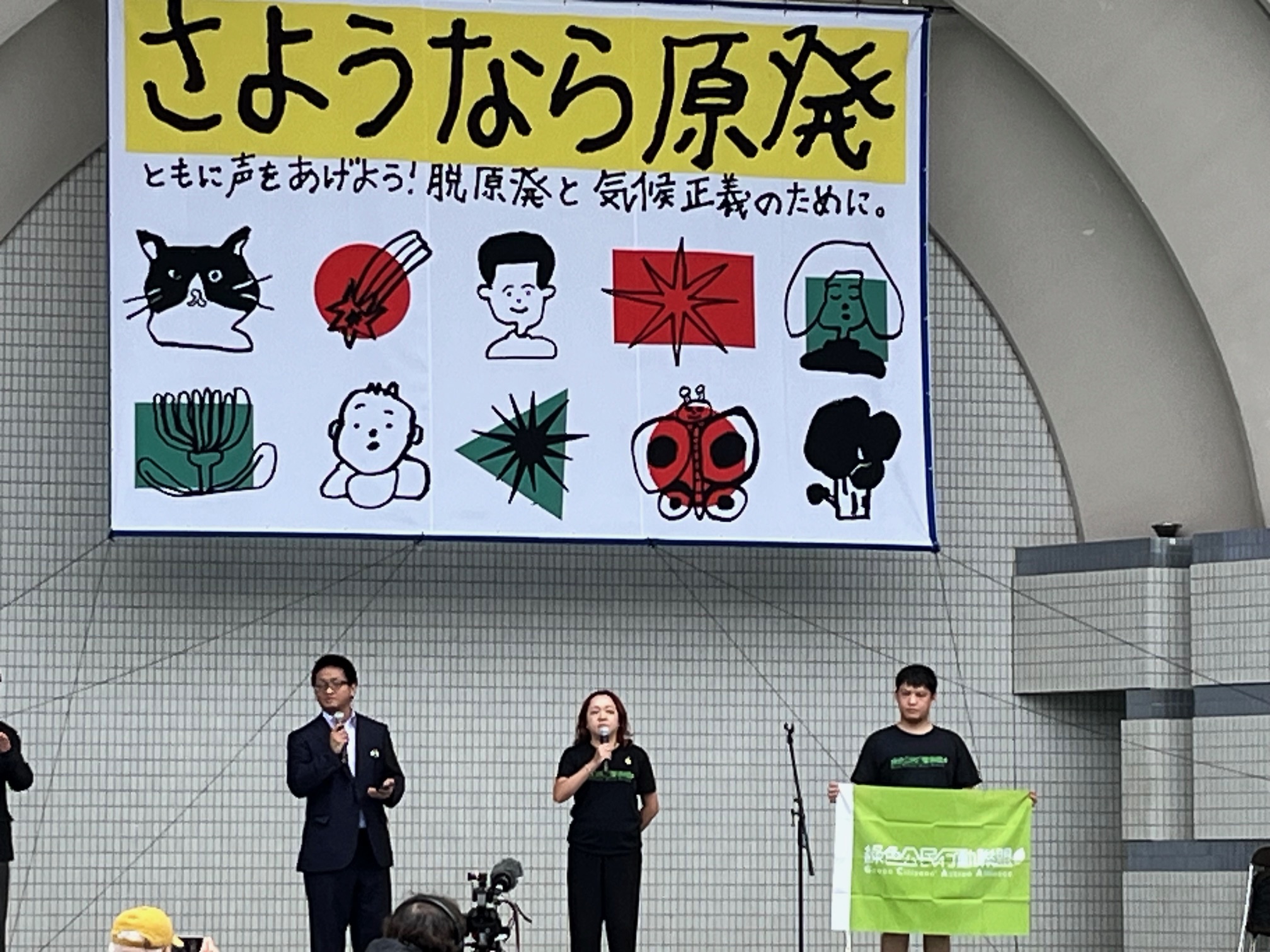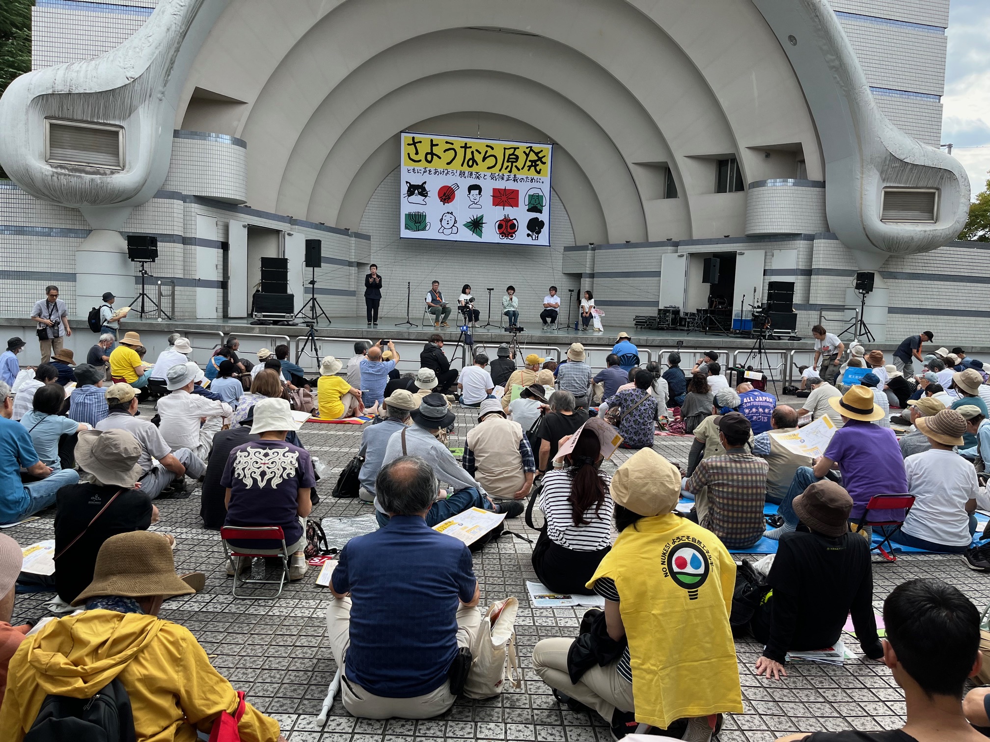 9月23日、代々木公園B地区・ケヤキ並木を会場に、さようなら原発9.23全国集会が開催された。主催は、「さようなら原発」一千万署名市民の会(落合恵子、鎌田慧、古今亭菊千代、佐高信、澤地久枝、藤本泰成、武藤類子)。「ワタシのミライ」が協力。この日のスローガンは、「ともに声をあげよう!~脱原発と気候正義のために~」。4500人が参加(主催者発表)、生活者ネットワークメンバーも各地から参加した。